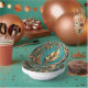 Beautiful gold leaves against a teal background cover the inside of this paper bowl.