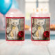 Playful and unique paper cat with pocket watch soda glass, fun conversation piece for soda party or friendly gathering.