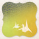 This paper coaster with a design of folded cranes and sayagata pattern is suitable for celebrations. Against a gold background, the traditional Japanese sayagata pattern, often used in kimono designs and fusuma artwork, is depicted in navy blue, accompanied by a pair of folded cranes. The continuous sayagata pattern symbolizes longevity and continuity. The folded cranes represent the prosperity of the family, longevity, and recovery from illness. Cranes have long been considered auspicious birds in Japan, symbolizing marital harmony, and are often used in wedding kimono designs. Folded cranes, particularly the senbazuru (1,000 cranes), are also known as symbols of peace.