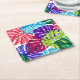 Paper coaster is shown in a lovely multi colour tropical palms print.