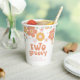 Retro inspired Two Groovy 2nd birthday cups with 70's style flowers and boho fonts and colours.