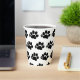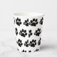 Paw print of right paw of polydactyl cat (seven toes). Print in black and staggered pattern.