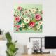 Vibrant and intricate arrangement of flowers, crafted in a three-dimensional style. The flowers have a variety of colours, including shades of pink, white, and yellow, with lush green leaves providing a backdrop. There are numerous floral shapes, some with layered petals and unique designs, creating a lively and playful composition