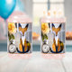 Playful and unique paper fox with pocket watch soda glass, fun conversation piece for soda party or friendly gathering.