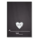 Paper heart on chalkboard with monogram wedding folded escort place card featuring a notebook paper love heart with holes around it on black chalkboard. On the heart there are your initials. This rustic whimsical monogrammed wedding template design is completely customizable and is perfect for a casual wedding especially for teachers. Text in white using a font that looks like handwriting. Fold it in the centre along the line to have a folded tent style place card.