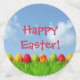 Pack of 60 small, medium and large pieces of confetti with an image, on both sides, of yellow, green, orange and pink paper mache Easter eggs on grass decorated with fun, whimsical designs. Cloudy blue sky background. Optional holiday sentiment. A perfect special touch to add to your Easter Décor! See matching greeting card, label, square sticker and wrapping paper. See the entire Easter Confetti collection under the HOME category in the HOLIDAYS section.