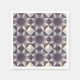 Quilt block in purple and white "spool" pattern. Eight spools rotate around a centre of dark purple. A purple flower print is the "thread" on the spool. With no frame for each block, the pattern gives a kaleidoscope effect. Part of set bkmAN1a.