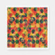 This paper napkin is shown in a basic white with a festive colourful abstract art print.