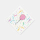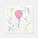 This is a festive napkin for your parties featuring a pink balloon, confetti and streamers.