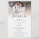Paper Photo Elegant Script Wedding Menu. A great value size 5.5” x 8.5” PAPER (not card) alternative. An informal set typography in black for the main heading Menu complementing the rest of the text which you can easily personalise. Replace the sample photo with your own favourite.