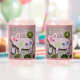 Playful and unique pink paper pig with pocket watch soda glass, fun conversation piece for soda party of friendly gathering.