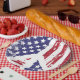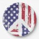We love this set of paper party plates with its red, white and blue peace sign, perfect for your July 4th bash or any other patriotic celebration! Available in 3 sizes round and 2 sizes square.