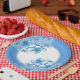 Party paper plate shown in a lovely Blue colour with a pretty Blue Hydrangeas print design.