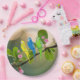 This paper plate with colourful budgies is a great for a springtime theme party.