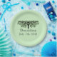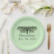 Tree with weeping branches/leaves. Black image of tree with light green background. Personalize with Name and Event Date at bottom.