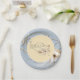 Party paper plate shown in a lovely champagne and blue fog colour with a love swans print design.