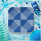 Central Octagon shape is divided into four triangles (2 light, 2 dark). Four squares of medium hue, connect to the wide sides of the octagon. Darkest colour is your choice of background colour (defaults to blue), other colours are lighter shades of chosen colour.