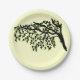 Tree with weeping branches/leaves. Black image has a hint of green at the edges. Background is a very pale yellow. ***Part of coordinated set - BKM2m.