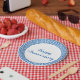 Have a great set of plates with a beautiful blue and white ancient Greek key design. There is space in the middle to put initials or any kind of text that you want on the plate. Choose the font, style and colour that you like.