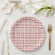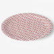 Red squares of bent fibres are interlocked to form a very loos weave across the plate.
