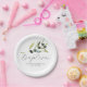 These baptism paper plates feature a watercolor olive branch in shades of green. The word "Baptism" appear in trendy modern script typography. Use the template fields to add your custom greeting, names and date. A botanical and elegant choice for rustic celebrations shower.