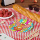 Great accent for an outdoor summer party. Bright colors, vibrant floral design