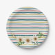 Paper plates that match the invitation to a picnic baby shower with stripes and daisies. Thanks to Creative Fabrica for some of the elements in the design.