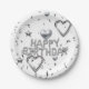 Paper Plates, Happy Birthday Silver Hearts Plate