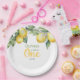Lemon citrus 1st birthday Paper Plates, painted in soft pastel colours in a watercolor style.