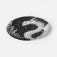Paper plates featuring original Mad Planet drawing of a flying dragon flying over a castle and shining stars. This piece is originally hand painted on black fabric.
