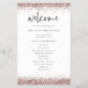 Rose Gold Glitter White Wedding Program. A great value PAPER (not card) alternative WITHOUT ENVELOPES at size 5.5” x 8.5” and at a budget price. This elegant design has faux glitter rose gold borders on each side. Welcome is in a set informal handwritten style script and the rest of the words you can easily personalise.