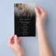 PAPER | Script Photo Overlay Wedding Program Black. A great value budget price PAPER (not card) alternative. An elegant design with your photo to the top edge behind a graduated tint layer with the text partially overlaid on top of yorur image at the bottom. The main header is in a stylish set script and the rest of the text you can easily personalise. You can change the text and background colours if you wish to match your wedding colour theme via the Customize Further option as well as other editing you may require. If you need any assistance with your editing of this design, please message me.