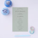 Simple Soft Silvery Green Wedding Program. A great value PAPER (not card) alternative 5.5” x 8.5” at a budget price. A stylish typographical design with black text on light sage green for your wedding programs which is fully customisable. The text, which you can easily personalise, is centred on both sides. You can change the text and background colours if you wish to match your wedding colour theme via the Customize Further option as well as other editing you may require. If you need any assistance with your editing of this design, please message me.