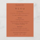 Simple Text Terracotta Wedding Menu. A great value PAPER (not card) alternative WITHOUT ENVELOPES at SMALLER size 4.5” x 5.6” and at a budget price. You can also change the font style and colours and the background colours on the front and back if you wish via the Click to Customize Further option.