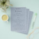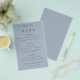 Simple Typography Dusty Blue Wedding Menu. A great value PAPER (not card) alternative WITHOUT ENVELOPES at a budget price. You can also change the font style and colours and the background colours on the front and back if you wish via the Click to Customize Further option.