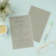 Simple Typography Soft Sage Wedding Menu. A great value PAPER (not card) alternative WITHOUT ENVELOPES at a budget price. You can also change the font style and colours and the background colours on the front and back if you wish via the Click to Customize Further option.