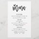 Paper Trendy Artsy Script Text Only Wedding Menu. A value for money PAPER (not card) alternative in size 5.5” x 8.5” with an informal set typography in black and heart motif for the main heading Menu complementing the rest of the text which you can easily personalise.