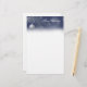 Envoyez les lettres de vacances avec cet ornement argenté. Il est a l'arrière - plan bleu de minuit avec les flocons de neige en baisse. Le texte est personnalisable ou peut être supprimé.