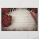 Ecriture papier avec une photo à thème floral d'automne. Papier à écritures recouvert d'une doublure défraîchie et un stylo assis sur le dessus avec quelques jolies fleurs rouges et des feuilles verts placés autour des bords.