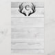 Planches en bois gris-clair/blanches rustiques à la mode impriment, les andouillers noirs de cerfs communs, et la lettre initiale.