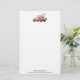 Papier à lettres avec une jolie illustration d'aquarelle blanche. Couleurs rose et rose. Camion ramassage avec un dossier/lit en bois ancien avec fleurs de cerisier.
