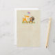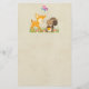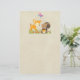 Papier à papier à lettres avec une jolie illustration montrant un cerf de bébé et un petit écureuil tenant un gland et un papillon volant au-dessus de leur tête. Ces adorables créatures boisées se tiennent debout sur une herbe avec quelques champignons fantaisistes à leurs pieds. Arrière - plan est une image de parchemin vintage / papier kraft, faux pas réel.