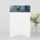 Papeterie avec photo d'un cerf royal avec des bois debout dans une forêt ombragée au milieu d'arbres ensoleillés. Neige tombant tout autour.