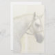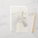 Un joli cheval andalou gris pomme. Portant un halter jaune verdâtre collé au mur et debout à l'intérieur d'une écurie. Ce bel animal est debout dans le profil et a un grand oeil brun amical, et un museau gris velouté. Son faux-étendard blanc gris extra-long est accroché autour de son visage et sa crinière blonde est suspendue de l'autre côté de son cou fort. Ce magnifique équin est à la fois puissant et doux.