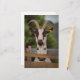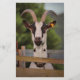 Photo d'une chèvre noire et blanche avec des cornes debout contre une clôture.