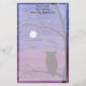 Aquarelle, Stylo & encre d'une Chouette crêpée perchée sur une branche d'arbre nu et silhouettée contre un ciel étoilé et hivernal avec pleine lune.