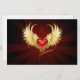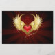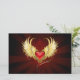 Coeur rouge vif d'un ange aux ailes dorées brillant dans l'arrière - plan rouge foncé et rayonnant décoré d'un motif.