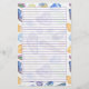 Une papeterie amusante et doublée d'un motif de coquillages peints à la main dans différentes nuances d'aquarelle avec bleu pastel, vert, violet et jaune avec un arrière - plan craché. Un grand cadeau pour un ami qui collecte des coquillages!