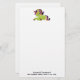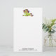 Papier à lettres avec l'image d'une licorne de style Frankenstein. Couleurs violettes et vertes. Éffrayant mignon.