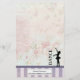 Jolie papeterie personnalisée avec une silhouette de ballerine sur un joli arrière - plan. Cette élégante danseuse de ballet se tient sur ses orteils, en pointe avec ses bras tendus avec grâce. Le mot "DANCE" écrit à côté de cette danseuse élégante. L'arrière - plan est composé d'un motif d'aspect vintage et abîmé, aux fleurs de fleurs. La partie inférieure du design présente des rayures de lavande de style vintage alternant dans les couleurs foncées et claires.